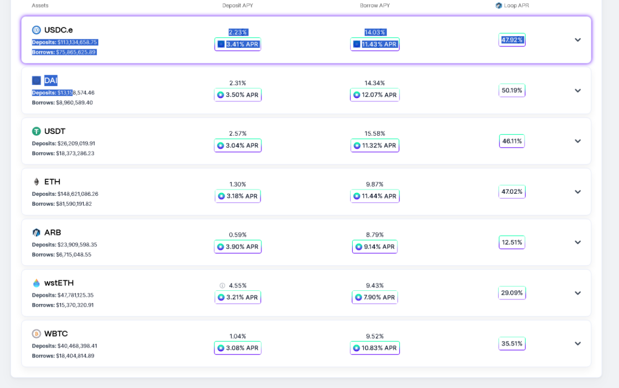 在此基础上RDNT把循环贷正当化了,借贷循环贷本质上就是一种“交易挖矿”,用高挖矿补贴刺激借贷,带来虚假需求。过去借贷平台搞循环贷都是为了拿自己的空气币换走用户的真金白银,但是RDNT更多的是杠杆化自己的TVL和APY。