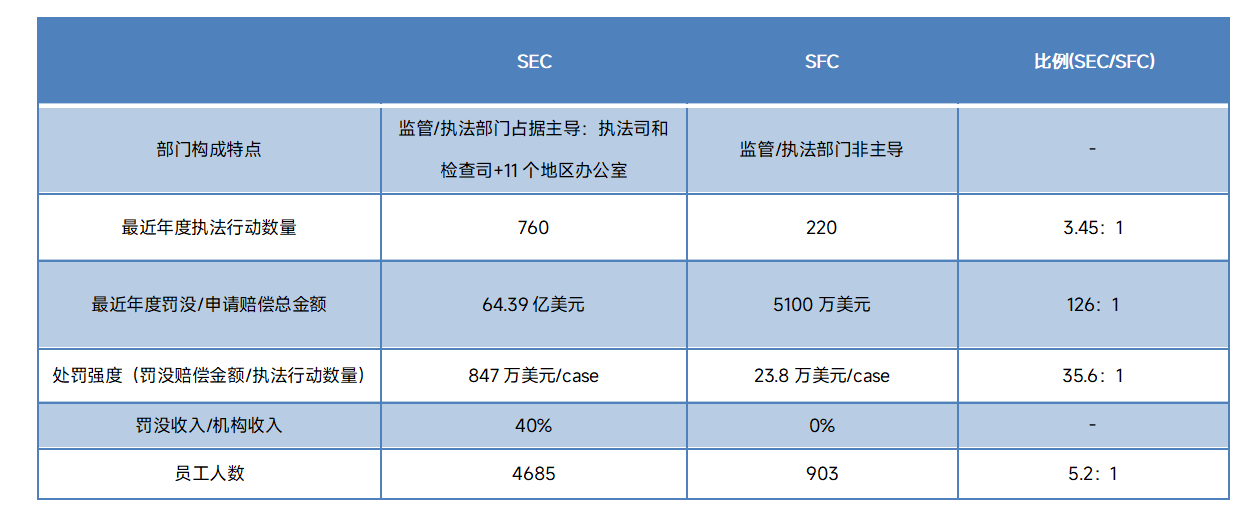 这个问题的关键点是我们不能只看他们是怎么说的(组织目标),还需要看他们怎么做的(实际行为)。回答这个问题有个很简单的办法:搞明白SEC和SFC的业务和人员构成