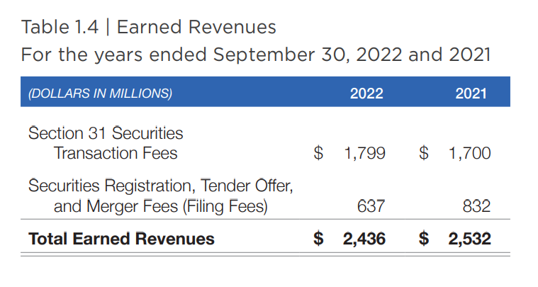 除此之外还有个更具有说服力的数据:财务情况。SEC的资金来源大致由三部分组成: