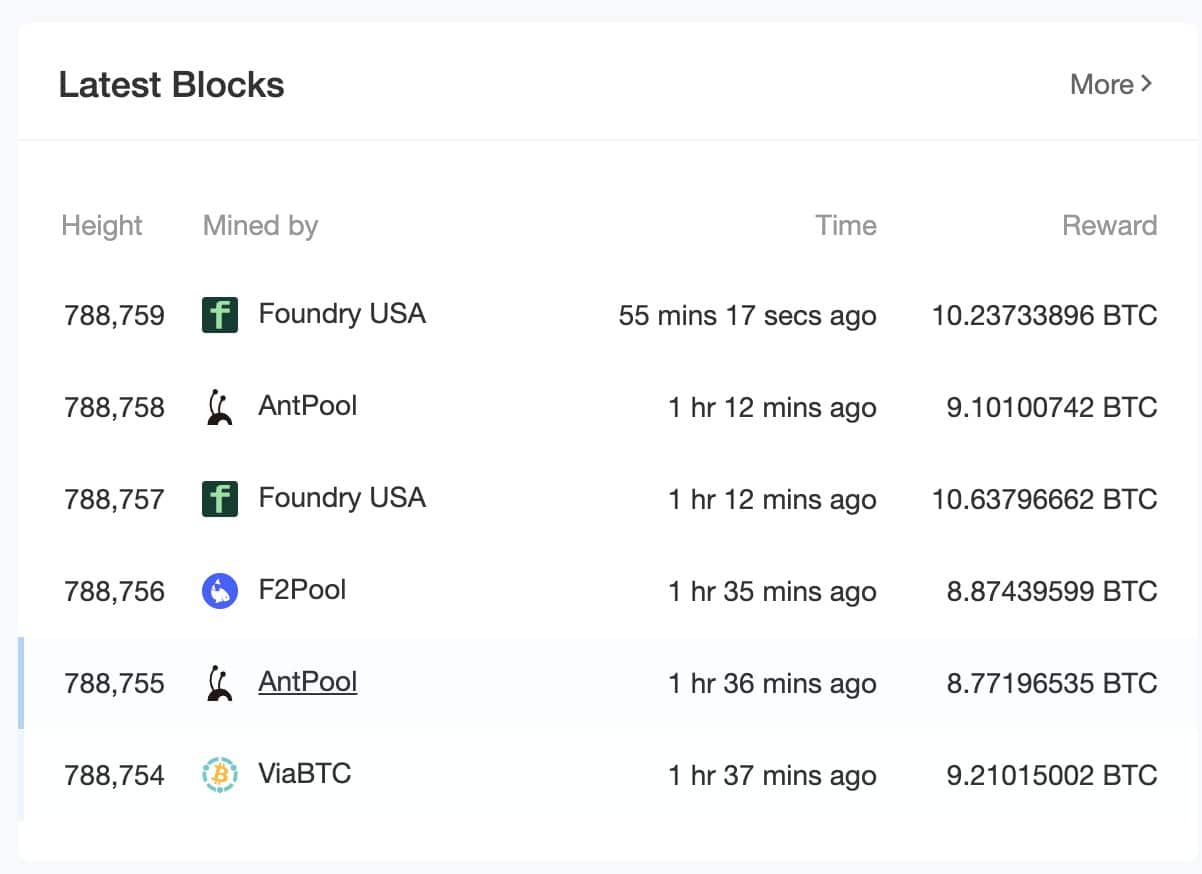 然而,数据显示BTC网络近一个小时未能生成区块。根据详细信息,最新的第788,759个区块在14:58:52左右爆破。
