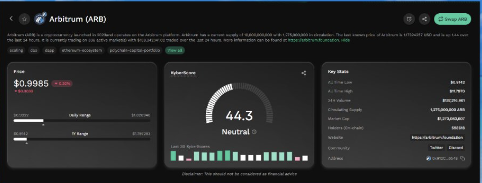 KyberScore 将根据其预测模型帮助你评估该代币,并显示一个 "看跌"、"中性 "或 "看涨 "的信号。