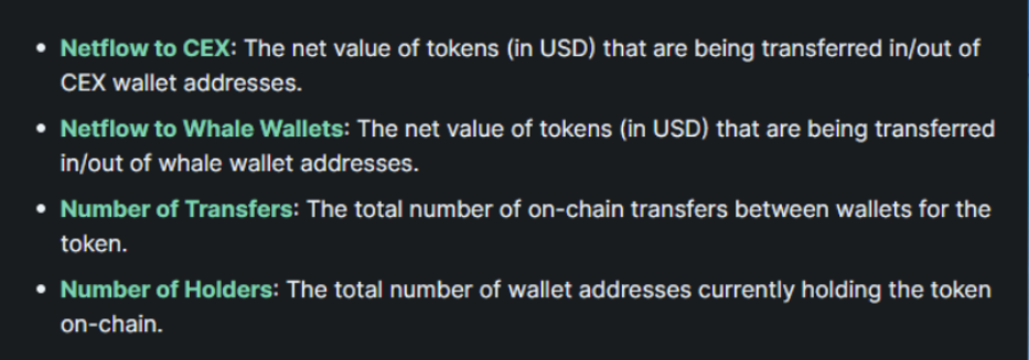 - 实时链上数据(交易量、鲸鱼追踪、CEX 流量等)。