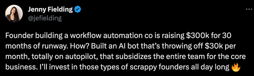 3. 创造性的收入生成和成本控制:一些创始人可能面临巨大压力,看不到未来的筹资计划。在这种情况下,您需要准备好不惜一切代价拯救您的公司。最近我看到了这条推文:
