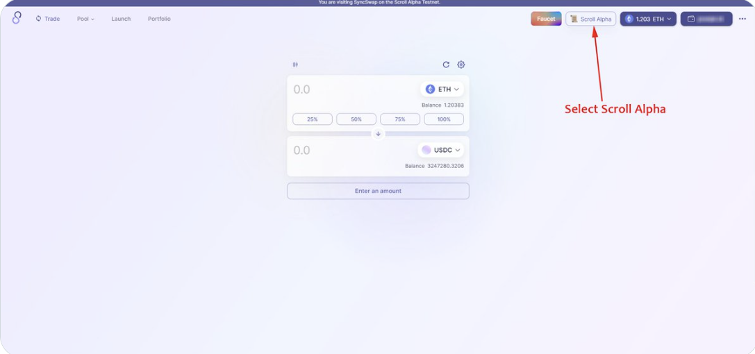 确保打开“测试网模式”以访问 Scroll 测试网络。