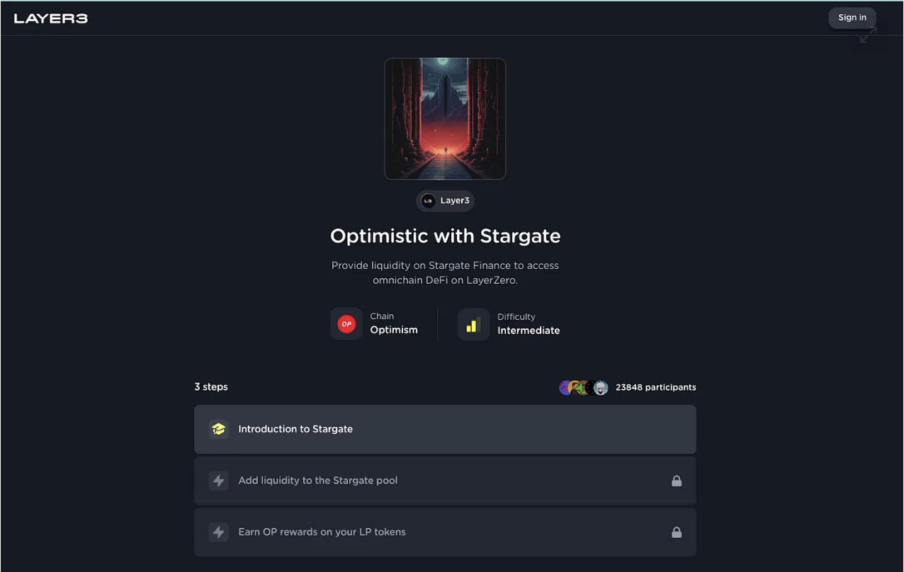 例如,以任务为例,或者对于在 Web 2 游戏行业工作的人来说,它们被称为“提供墙”:像Layer 3、Rabbithole 或 Galxe 这样的发行商提供了一个目的地,供当前或潜在的 Web 3 用户通过与 Web 3 协议互动收集积分和奖励。这些任务通常是虚拟商品赠品:有时是可交易的物品,如代币,通常只是平台内的任务“积分”。任务的挑战——它们通常是一系列步骤——往往是一些简单的事情,比如连接到 Twitter。有时候会更复杂和有意义,比如将资金交换或桥接到某种代币或协议中,这是使用最终产品的真正第一步。