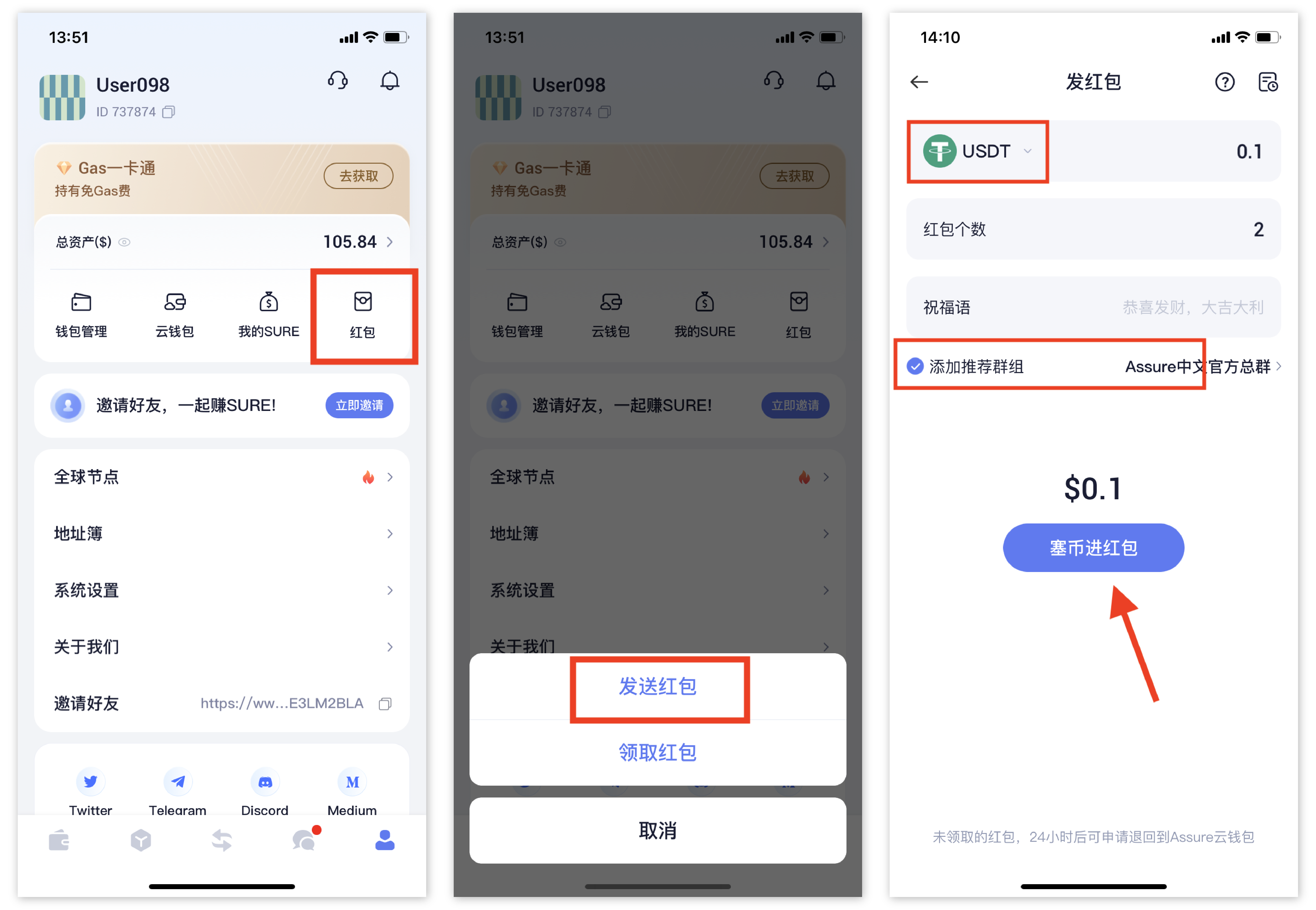 - 社区KOL或项目方可以使用Assure分享红包作为社交工具可活跃社群,增强社群互动性和趣味性;