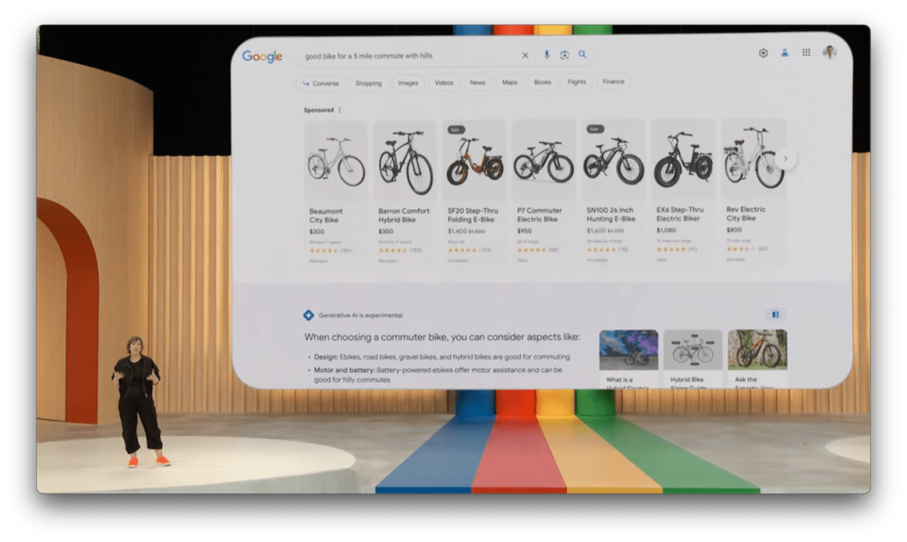 正如我所料,谷歌正在采取一种混合方法:大多数搜索都不是商业性的,所以谷歌要把生成的文本直接放在最前面: