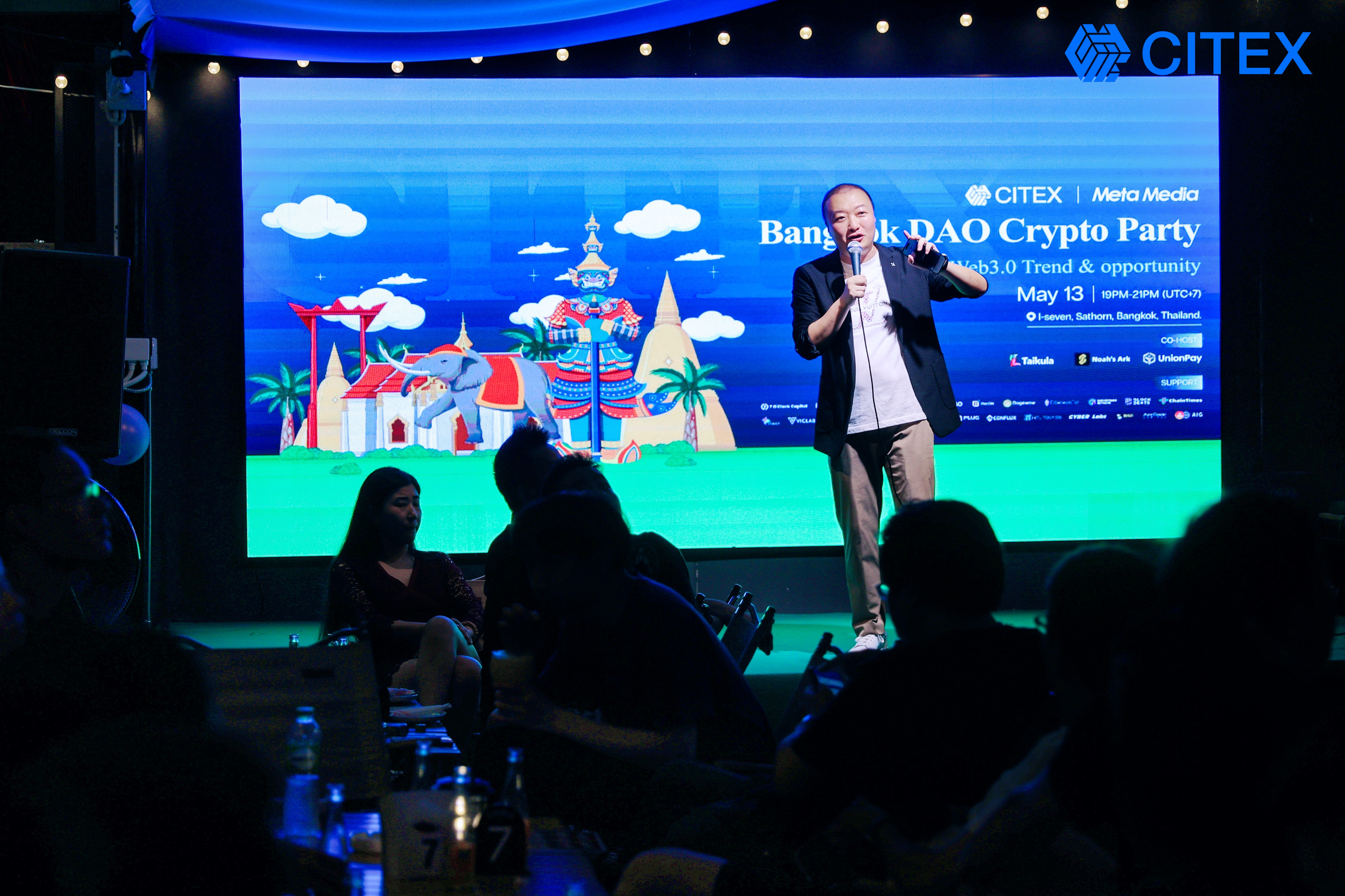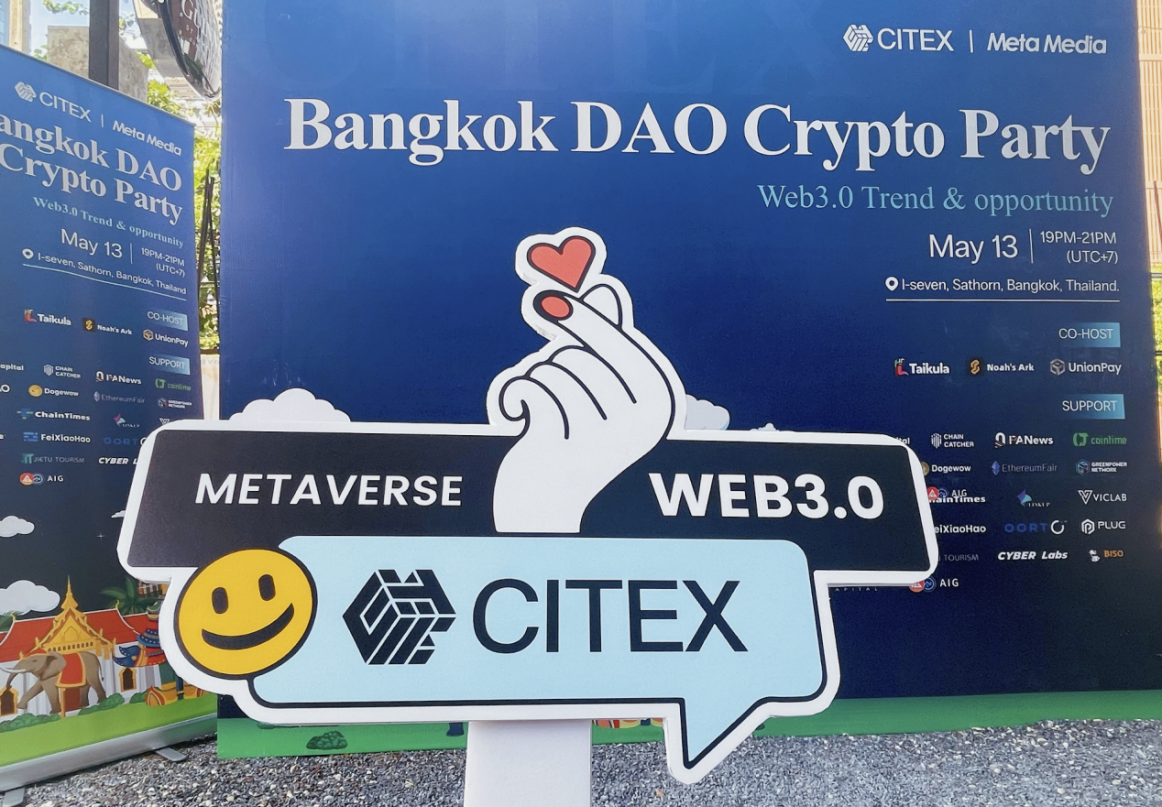 由CITEX主办,Meta Media承办,UnionPay ,Noah’s Ark,Taikula参与协办的“CITEX曼谷DAO Crypto Party”于2023年5月13日在泰国曼谷顺利举行。本次活动吸引了中国大陆,中国香港,美国,瑞士,匈牙利,越南,马来西亚,泰国等地区的加密行业爱好者和从业者远道而来,为全球地区的加密行业爱好者和Web3.0创业者提供了一个良好的资源对接桥梁,也帮助更多Crypto项目融入泰国市场。