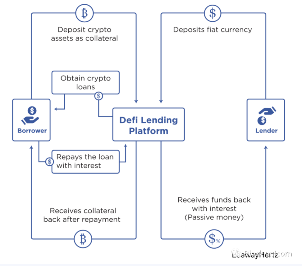 稳定币持有者使用 DeFi,通过在链上借贷市场向加密货币交易商放贷,产生被动收益