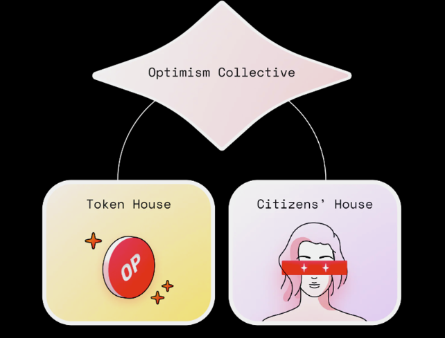 过去传统的“链上治理”大都采用两种模式,第一种模式是一币一票(配合Ve或币龄);第二模式是一人一票(公链 BFT 节点或者一些 PFP)。Optimism在前两种模式的基础上创新的提出了第三种模式,它就是Optimism Collective,把前两种模式结合在了一起,由 Token House 和 Citizens’House(公民之家)共同管理。