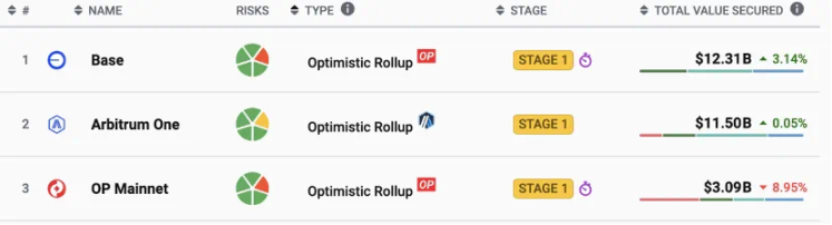 同时,根据 L2BEAT 数据,截至 2024 年 12 月 3 日,Ethereum L2 网络的总锁仓价值(TVL)已飙升至 540 亿美元,较年初的 226 亿美元 翻倍,增长幅度超过 139% 。这一趋势主要由 Arbitrum(占比 37%,约 201 亿美元)和 Base(占比 23%,约 123 亿美元)驱动,显示大量资金正在从以太坊 L1 向 L2 分流。