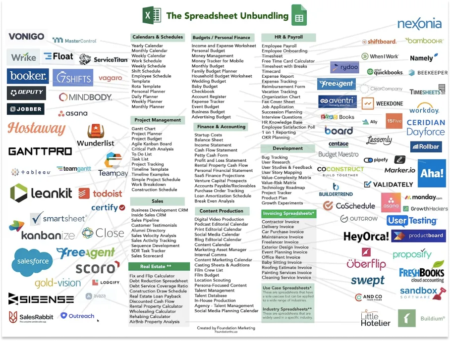 说现在比十年前更容易创造出优秀的软件产品,这一点毫无争议。随着事情变得更容易,更多的事情发生了。“软件的种类和数量都会增加。”我认为SaaS将是一个难以投资的类别,这不是因为将要开发的优秀SaaS产品太少,而是因为有太多!优秀的软件将被商品化。