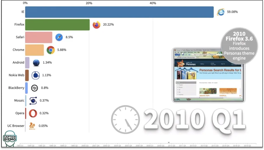 战场上到处都是较小的敌人:Mosaic,网景,Mozilla,Opera,Flock。浏览器公司是众多候选人中最新的一家。