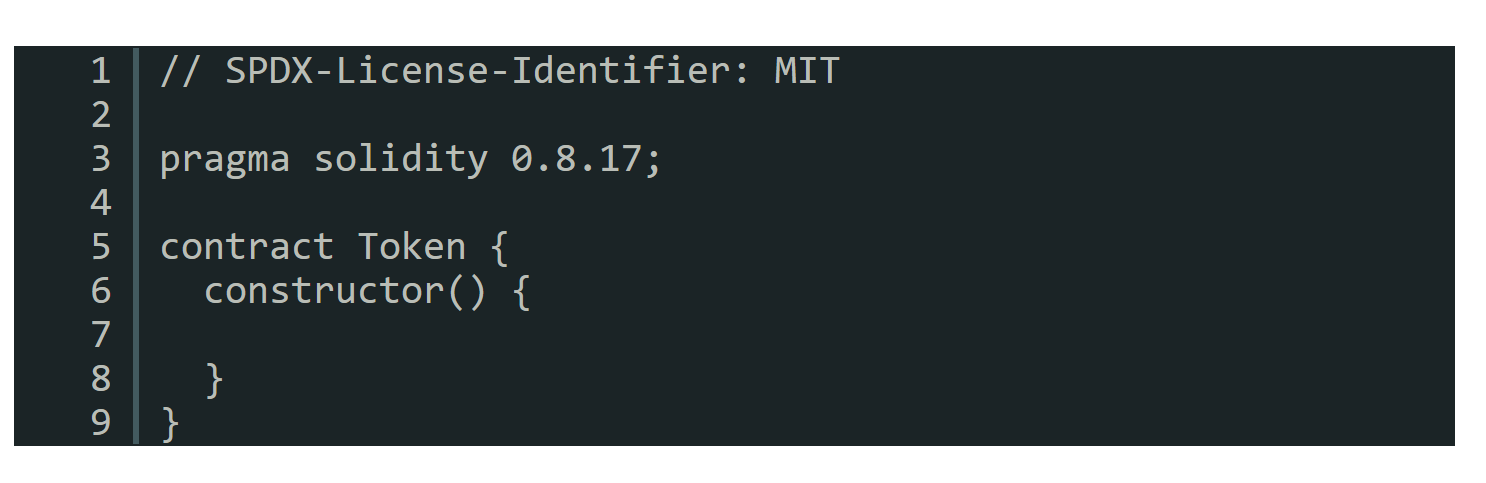 现在我们已经创建了智能合约文件,接下来就需要用实际的代码填充它。让我们从基本结构开始。以下代码将作为构建我们智能合约的基础: