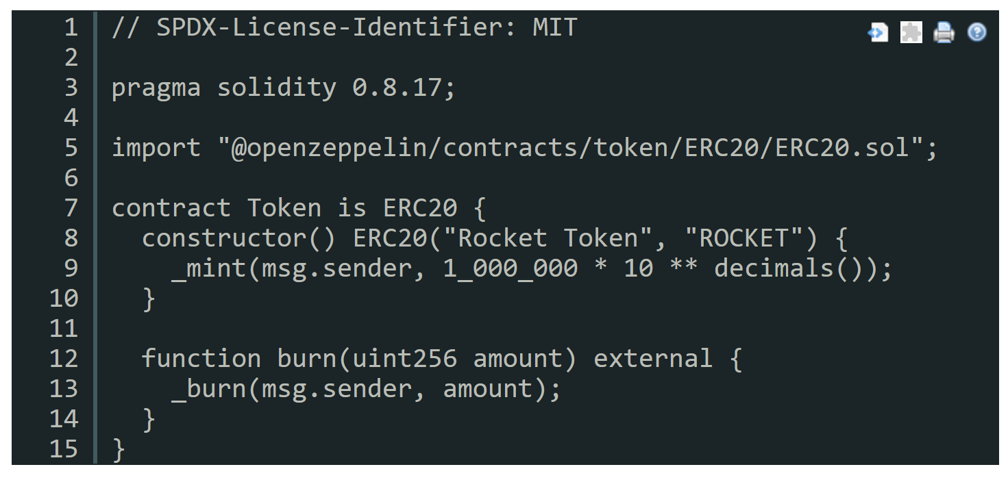代码差不多完成了,还剩一件事:在部署时铸造一些代币。 我们将从 ERC20 调用 _mint 函数以向部署者发送一百万个代币: