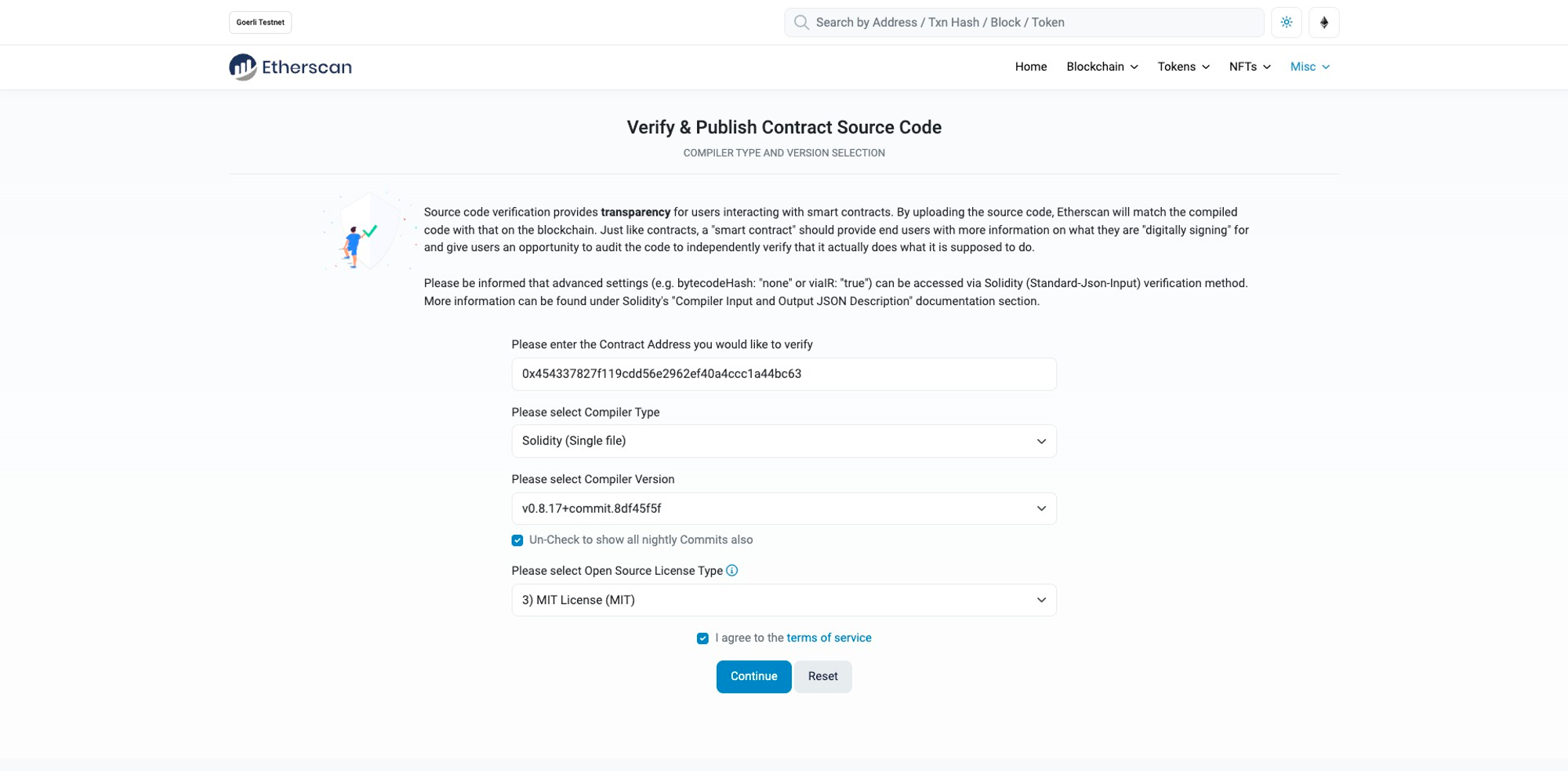 解决问题后,我们将其复制粘贴到 Etherscan 验证步骤中: