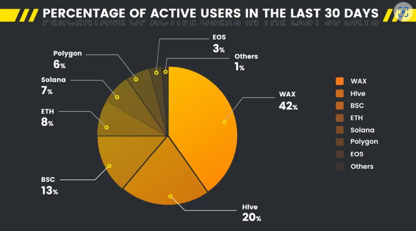 在生态系统表现方面,似乎没有任何玩家占据主导地位,但 WAX、BNB Chain、Polygon 和 ETH 似乎是其中领先的 GameFi 区块链网络。
