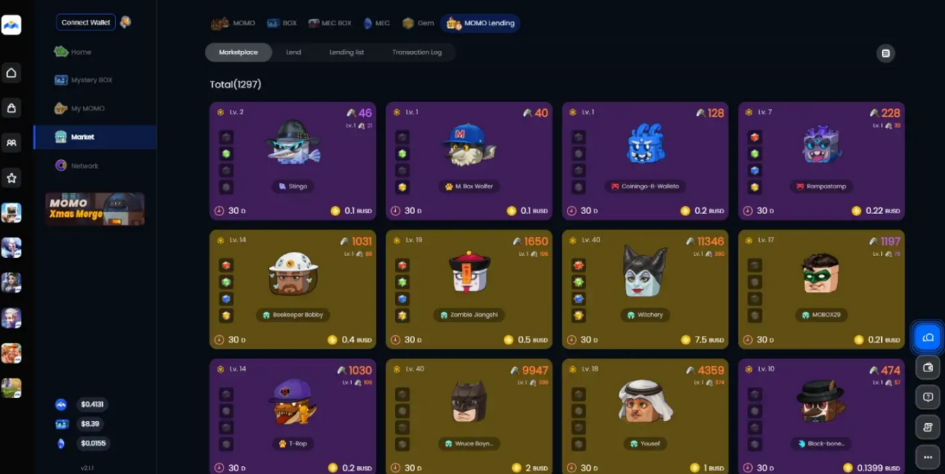 NFT 在 MOBOX 生态系统中发挥着至关重要的作用,因为用户需要 MoMo NFT 才能在 MOBOX 生态系统中变得活跃。
