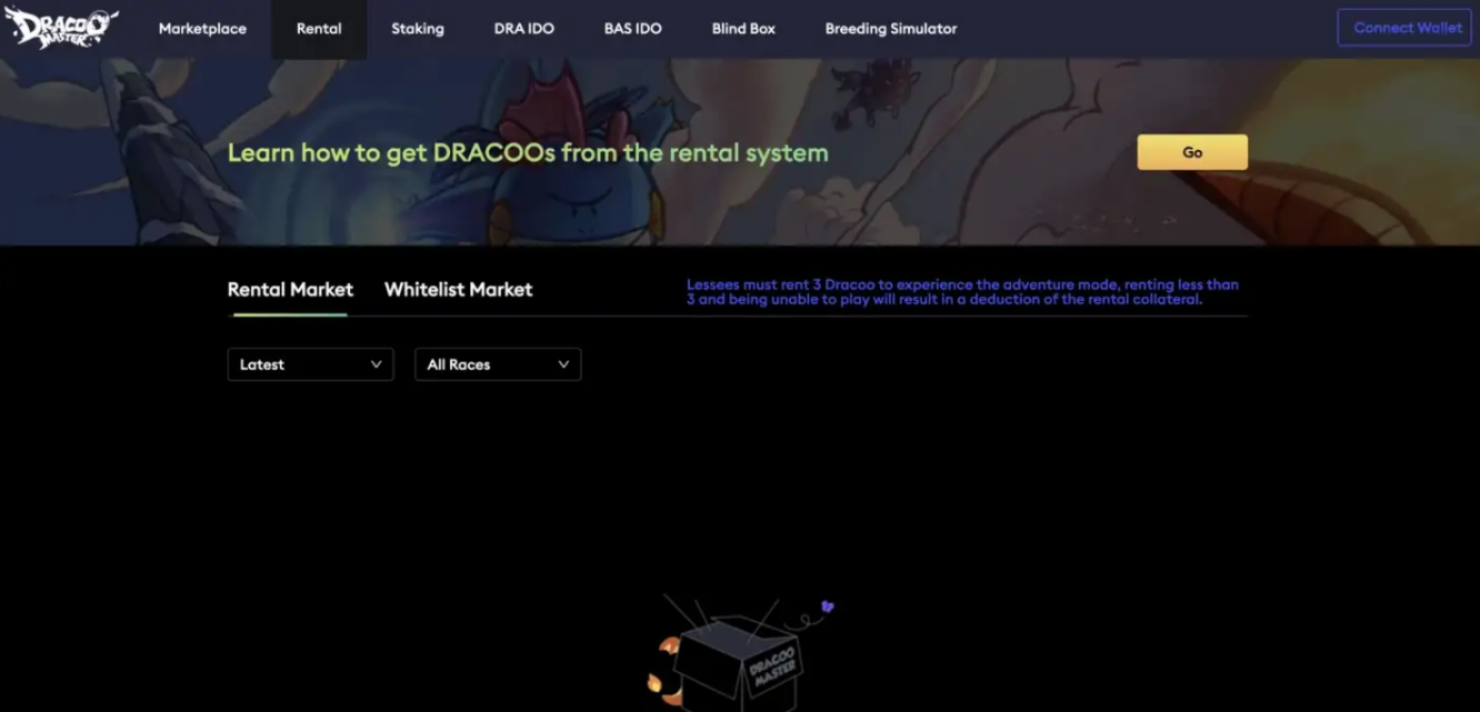 - 对于非区块链玩家的用户,他们可以在应用内购买时,使用法币租用 Dracoo NFT 来玩游戏;