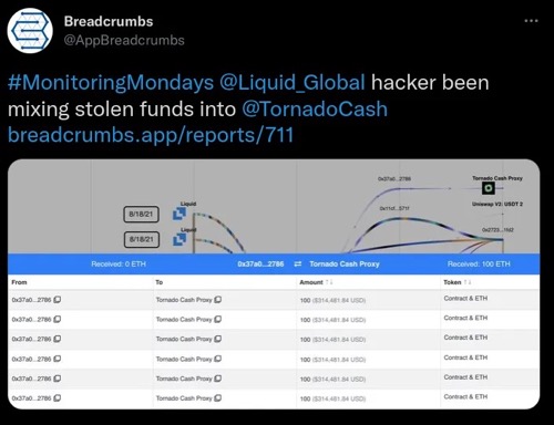 - Liquid Global黑客/同谋正在使用Blender来混淆他们的交易历史。