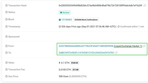 我们的分析发现,[0x55788…](Liquid Exchange“黑客”):