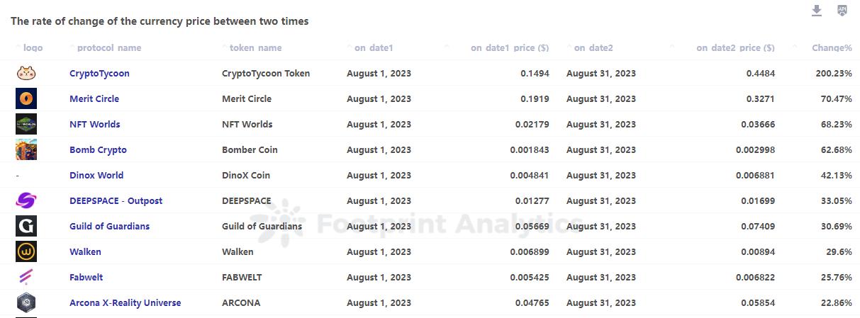 - 八月,CryptoTycoon 代币表现出色,得到 200.23% 的价格增长。