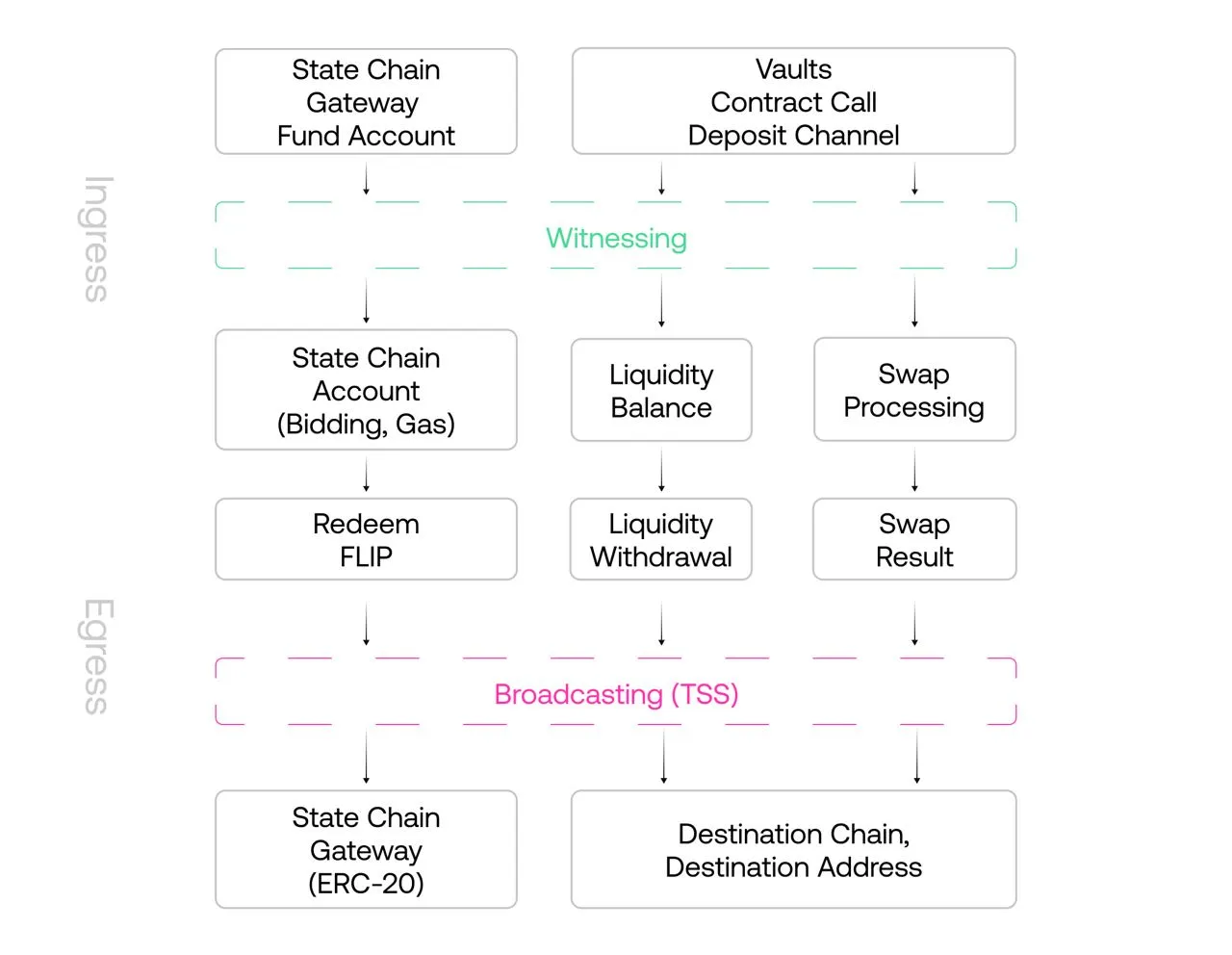Chainflip 可以被视为由两个不同架构层次组成的跨链流动性网络: