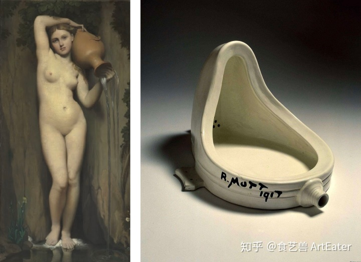 1917年,在纽约独立艺术家协会举办的一次展览中,作为评委之一、当时已经成名的艺术家的马赛尔*杜尚将一个从商店买来男用小便池起名为《泉》,匿名送到美国独立艺术家展览要求作为艺术品展出。杜尚之所以把小便池命名为《喷泉》,除了他确实是水淋淋的外表之外,也是对艺术大师们所画的《泉》的讽刺。