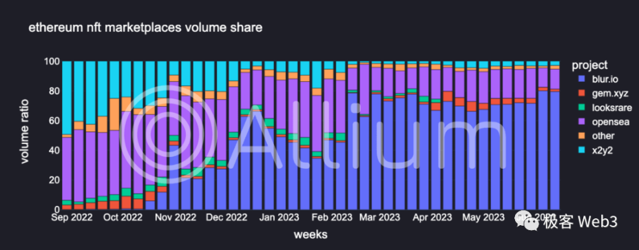 如今,空投已经成为在同赛道内与竞争对手抢占用户,发起「吸血鬼攻击」的常规武器之一。项目方为留住用户也各出奇招,在竞争激烈的 Layer2 赛道,OP 曾对用户进行多轮空投,向竞争对手施压。但近两年,空投相关的「吸血鬼攻击」在 NFT 领域表现得更为明显。在最大化释放 NFT 流动性的 Blur 出现前,LooksRare、X2Y2 等多个 NFT 交易平台先后试图通过空投捕获用户,但这些产品本身缺乏差异化优势,在回报预期逐渐枯竭后,用户自然不再买账,平台的交易量和活跃量大幅下降,OpenSea 老大哥的地位依然难以撼动。