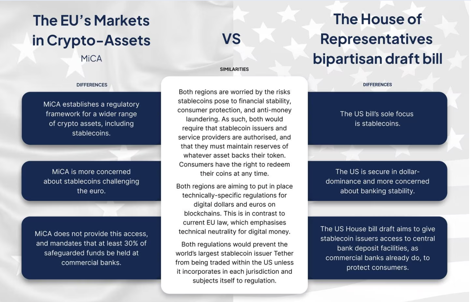 业内人士表示,如果美国对稳定币的态度如上个月公布的两党法案草案所示继续推进,这可能会给美国公司带来优于欧盟公司的优势。