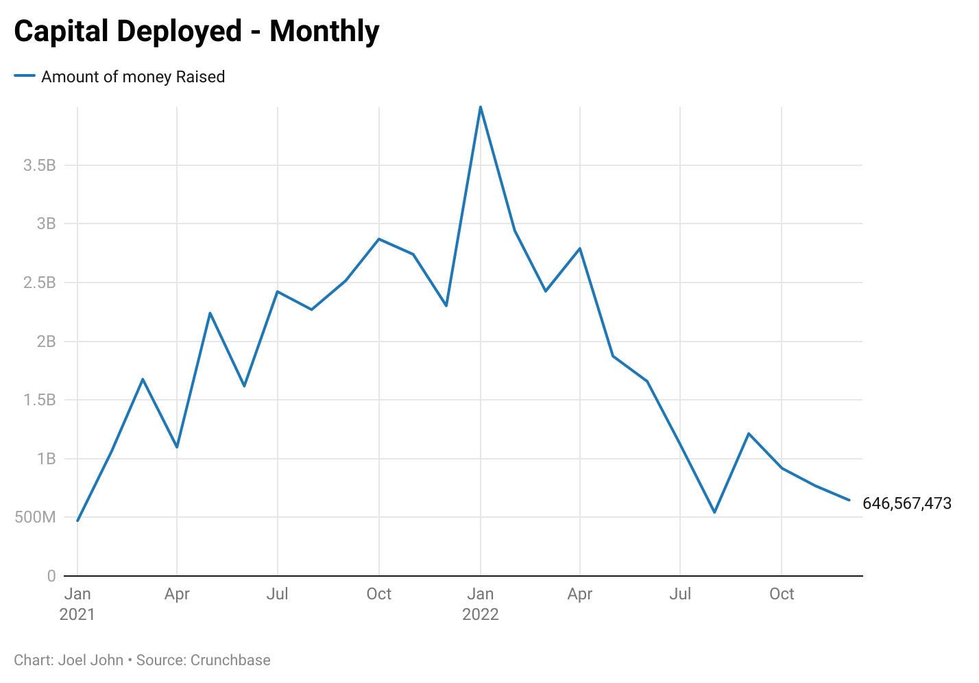 大概率不是。2022年出现的大部分融资都发生在1月份,当时创始人和投资者刚结束寒假归来,并通过宣布他们的融资来开启新的一年。这就是为什么你可以看到该月的融资金额和交易频率呈季节性上升。在过去的一年里,目睹了中等牵引力的公司为了获得跑道而进行大规模融资,而Do Kwon、Su Zhu和Sam决定点燃这个行业。