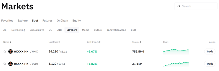 在落地层面,xBrokers 给出了一个可量化的样本。其核心业务板块 xBrokers 交易区 于 2025 年 10 月 20 日 正式进入试运行,首个实股映射标的为 “聚”0XXXX.HK。这意味着“股票交易 + 质押挖矿 + 代币激励”的 RWA 生态架构开始接受市场检验。