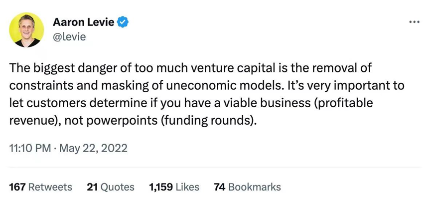 事实上,其中一些公司是卓越的公司,将有一天超过它们的历史最高值,而其中一些公司可能无法在2023年存活下来。但是,风险资本在将这些公司推向不可持续性的过程中,没有对这些公司做出太多的贡献,并且对未来前进道路的认知非常有限。
