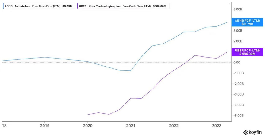 在那篇有关现金烧的文章中,我谈到了很多关于Uber和Lyft的问题。当你看着Uber(市值780亿美元,2022年营收310亿美元)和Lyft(市值30亿美元,2022年营收40亿美元)时,你会发现烧钱来主宰市场的一个明显的争论。但是Uber并不一定已经走出泥泞。