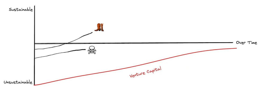 有一句名言,有时被归因于约翰·梅纳德·凯恩斯(John Maynard Keynes),谈到了市场在行动上的执拗性:“市场可以比你的偿债能力更长时间地保持非理性”。对于那些现有模式被证明当前是不可持续的企业来说,我认为同样的想法也存在。市场会像一个等待儿子搬出地下室的沮丧妈妈一样行动。她只会忍受这么多,然后会将他踢出去。换句话说是什么会发生,如果资本(或市场对你的不可持续性耐心)在你实现可持续性之前用尽呢?