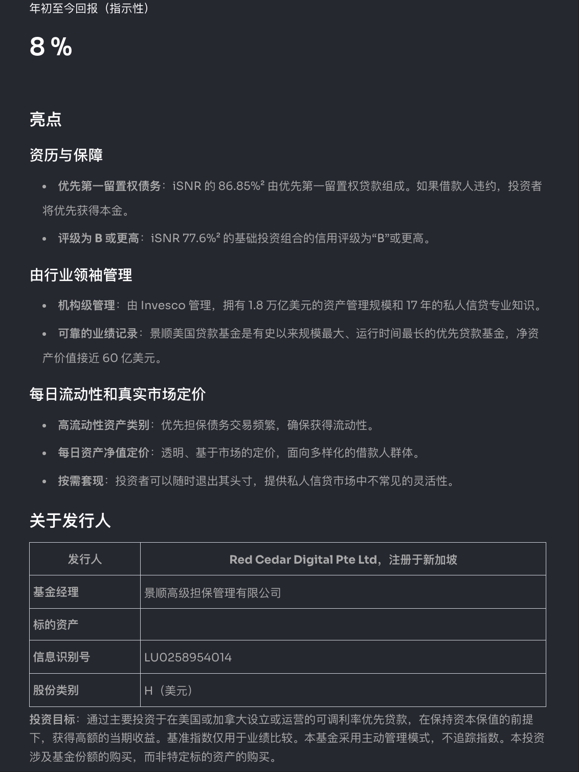 - Low-Risk RWA|低风险资产:合规发行的传统金融成熟产品(如美债/货币市场基金等)。