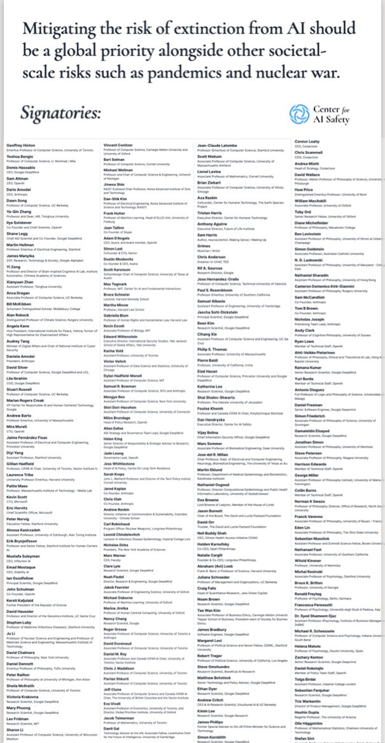 他可能也看到了FLI 6个月人工智能暂停信上的成千上万个知名签署人,以及一些调查结果,比如42%的首席执行官表示,人工智能可能在五到十年内毁灭人类,超过一半的人工智能专家至少给出5%的概率,认为人工智能会导致人类灭绝。他应该很容易停止不准确地诋毁他的对手,而是专注于自己立场的逻辑。