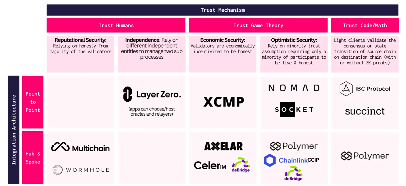 我们将根据信任机制和集成架构来划分整个互操作性的格局。