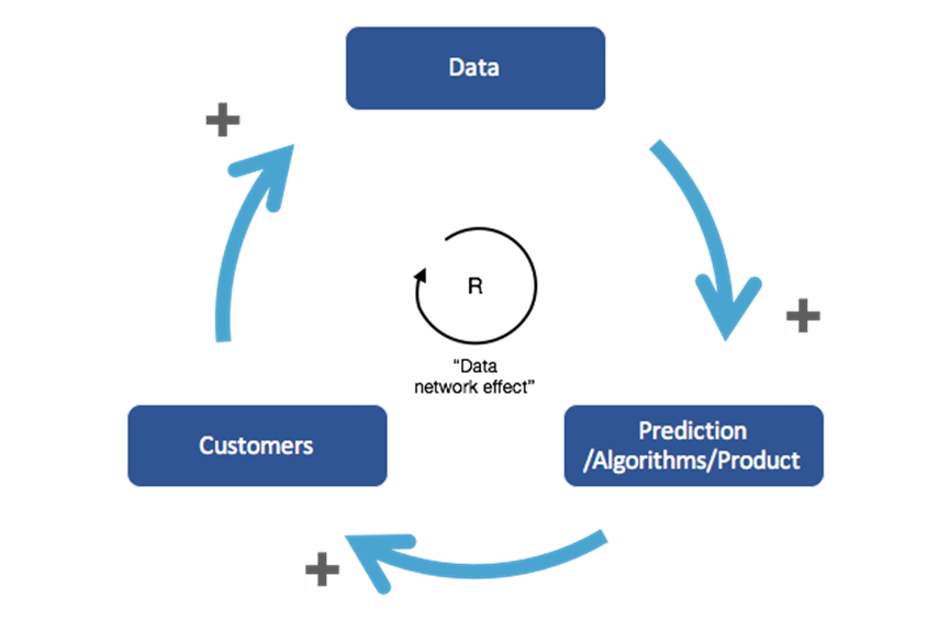 这种机制将遵循以下过程:随着公司吸引更多的客户,它从每个客户那里获得更多的数据来训练和优化其算法。有了更多的数据,预测的准确性提高了,产品的整体质量也提高了。更好的产品有助于说服新客户购买并贡献他们的数据,循环就此闭合。