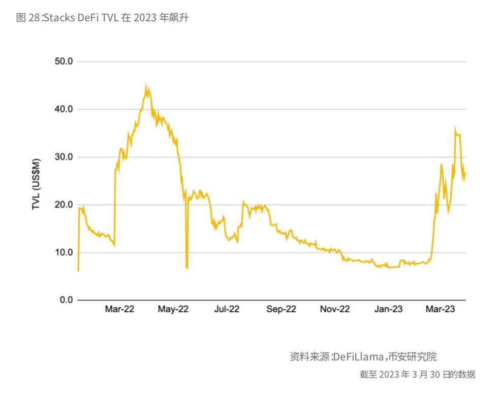 然而,我们应该敏锐地注意到的一件事是,自2023年1月以来,每日交易量和每日活跃地址都在增加。虽然没有反映在图5中2022年的年终开发人员数据中,但我们看到人们对在比特币上进行开发的兴趣重新燃起。A