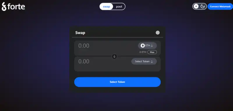 Canto 链上的元老级别 DEX 之一,当前推出支持 BELIEVE、NOTE、ENC、RAB、CANTO、USDC、USDT 等 Token 的交易功能。Forteswap 在支持交易功能同时也推出了提供流动性功能,是 Canto 链上功能比较完善的 DEX。