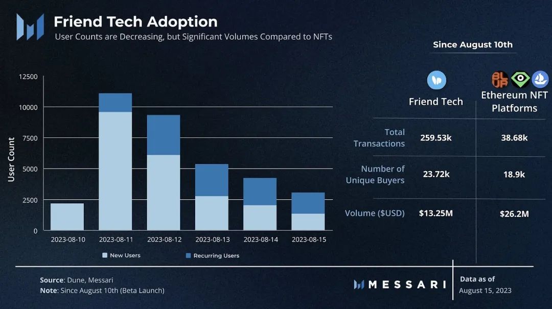 当然,NFT 领域目前正处于熊市,而与顶级 NFT 平台相比,friend.tech 的活跃数据已经相当令人印象深刻,至少就目前情况而言是这样。因此,如果该应用程序继续获得关注,然后更紧密地拥抱 NFT,那么这可能会成为重新提升 NFT 活跃水平的重要渠道。