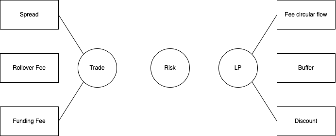 GNS 使用了 Spread, Rollover Fee, Funding Fee 三重机制来进行交易侧的风险控制。