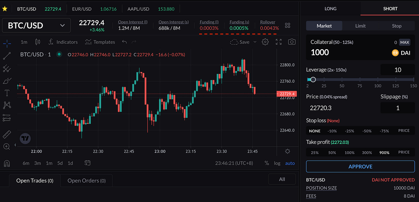 如果你对 GNS 缺少基本的了解,简单来说其为一个去中心化永续合约平台: