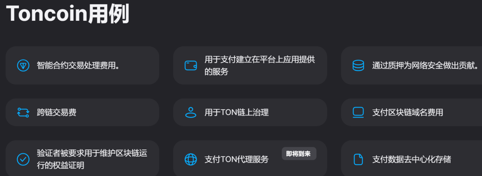 代币 $TON 有多个使用场景,如 TON 链上的交易手续费支付、质押、跨链交易等,未来 $TON 也可以用于支付 TON 代理服务等。$TON 的定位也类似于 Telegram 上的法币,$TON 在 Telegram 上的应用也尤其值得关注。比如 $TON 可以以更加优惠的折扣用于支付 Telegram Premium 的会员费用,Telegram 钱包目前可以直接使用信用卡购买 $TON,再用 $TON 购买匿名账号之类的虚拟商品。据统计,价值共计 5 千万美金的匿名账号在上线一个月内便已被全部卖出,截至目前,匿名账号已有 1.3 亿美金的销售额,$TON 在这方面的支付潜力巨大。未来 $TON 也有可能用于 Telegram 推广,广告服务也可以使用 $TON 来支付。