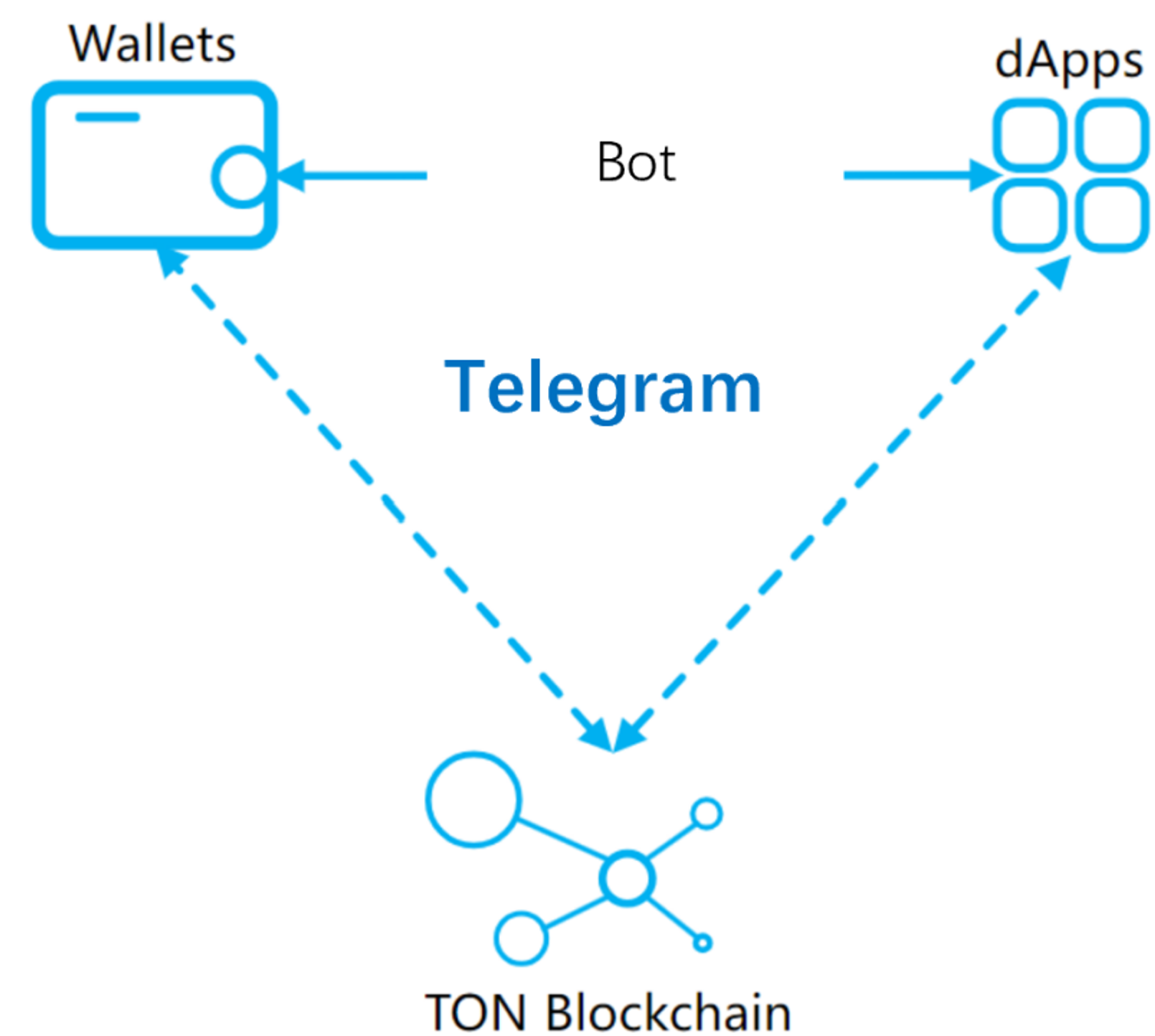 到此,读者可能疑惑 Telegram Mini Apps 与 Web3 又有什么关联呢?这些 Telegram Mini App 可以在 Ton 链上使用 Ton 提供的基础设施建设,并通过 Telegram Bot 在 Telegram 界面供用户使用。这样 App 开发者不仅可以使用 Ton 提供的基础设施来开发项目以降低项目开发的难度、减少开发时间和获取 Ton grants 等资金支持,更重要的是开发者可以快速地接触到 Telegram 广泛的用户群体,进而在 Telegram 内实现多种方式货币化(如通过应用内购买、订阅模式或广告)。