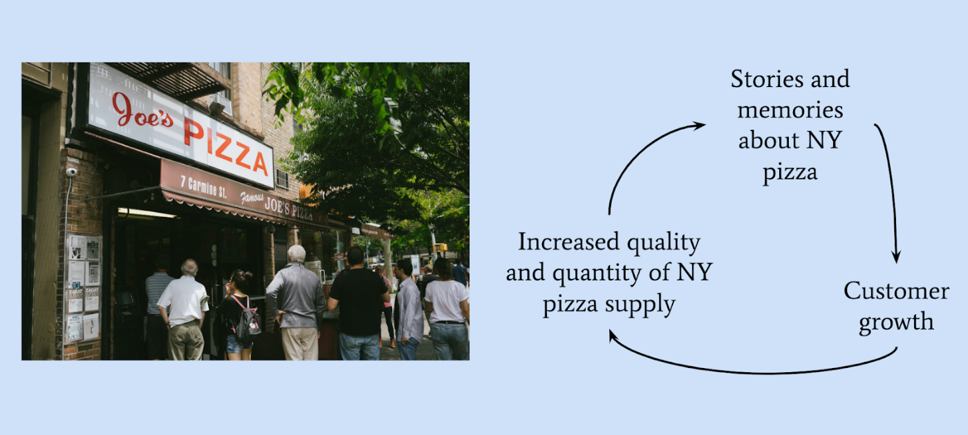 当我去纽约时,我想吃披萨。有这样一种说法,这是纽约的经典之举,参与其中感觉很好。因此,纽约有很多披萨店可以满足这一需求,这让人们产生了新的记忆,也让这座城市的披萨文化在后代中得以延续。