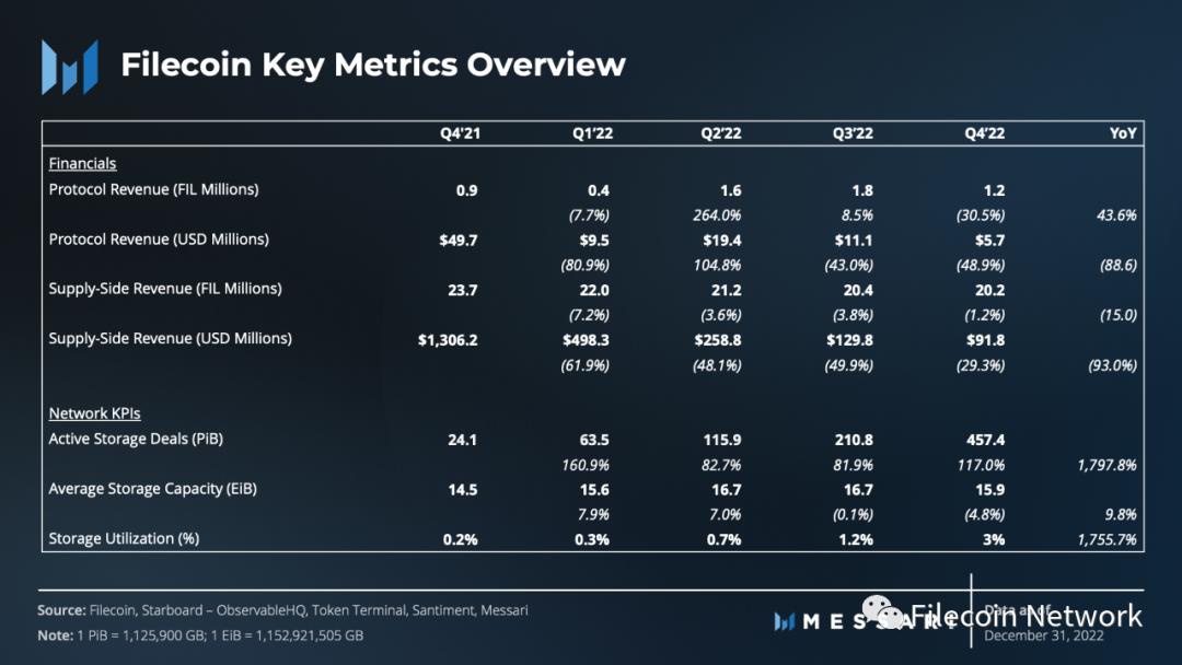 - FIL费用收入在22年第四季度降低了31% (美元计价降低了49%),这主要因为基础费用比上一季度同期降低了60%(即便活跃存储交易提议增加了10%)。