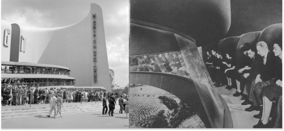 1964年的世界博览会是Robert Moses(权势的代言人)和Walt Disney合作举办的,体现了“通过理解实现和平”,并致力于“人类在不断扩张的宇宙中缩小的地球上取得的成就”。本届博览会向消费者重新介绍了这个时代最具影响力的发明:带键盘的电脑、电传打字机、电话调制解调器、,土星五号的引擎、双子座飞船、月球车、卫星、视频会议、电子动画、未来之家、海底酒店、电力城市、核电站和彩色电视。公司再次在这一叙事中占据了主导地位,展示了宏伟的展品,如: