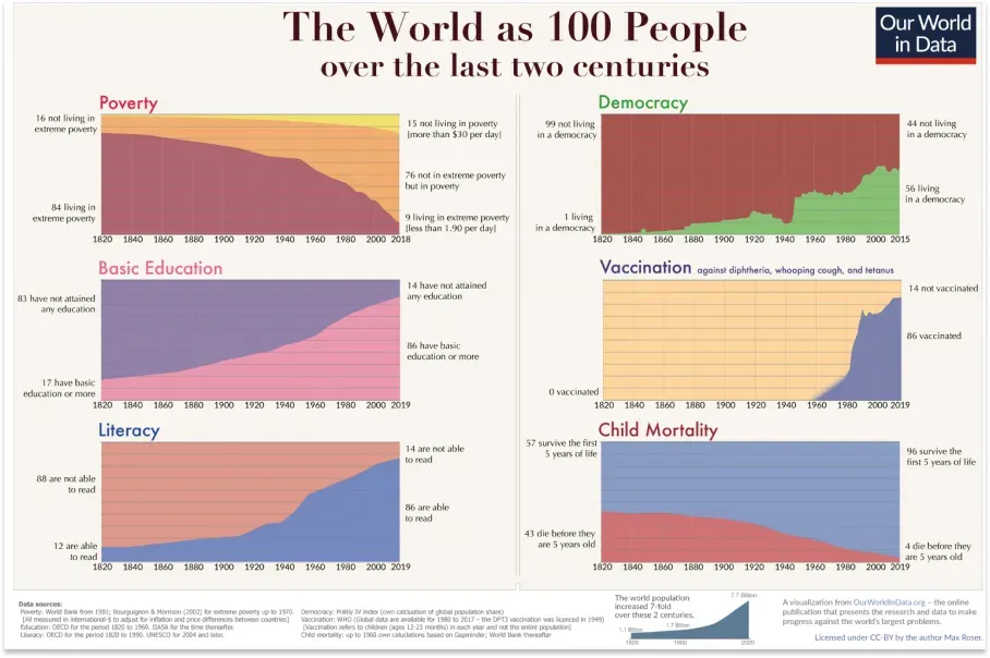 我们正生活在一个20世纪30年代到60年代的科幻故事讲述者梦寐以求的黄金时代,然而,如果你对街上的普通人进行调查,大多数人会告诉你,事情看起来不太好。根据2021皮尤调查数据,68%的美国人认为他们的孩子不会比现在更好,但确实有这样的氛围。